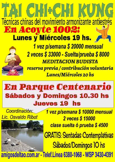 Amigos del Tao ofrece clases regulares, seminarios y talleres de Tai Chi Chuan, Chi Kung, Yoga y Meditación.